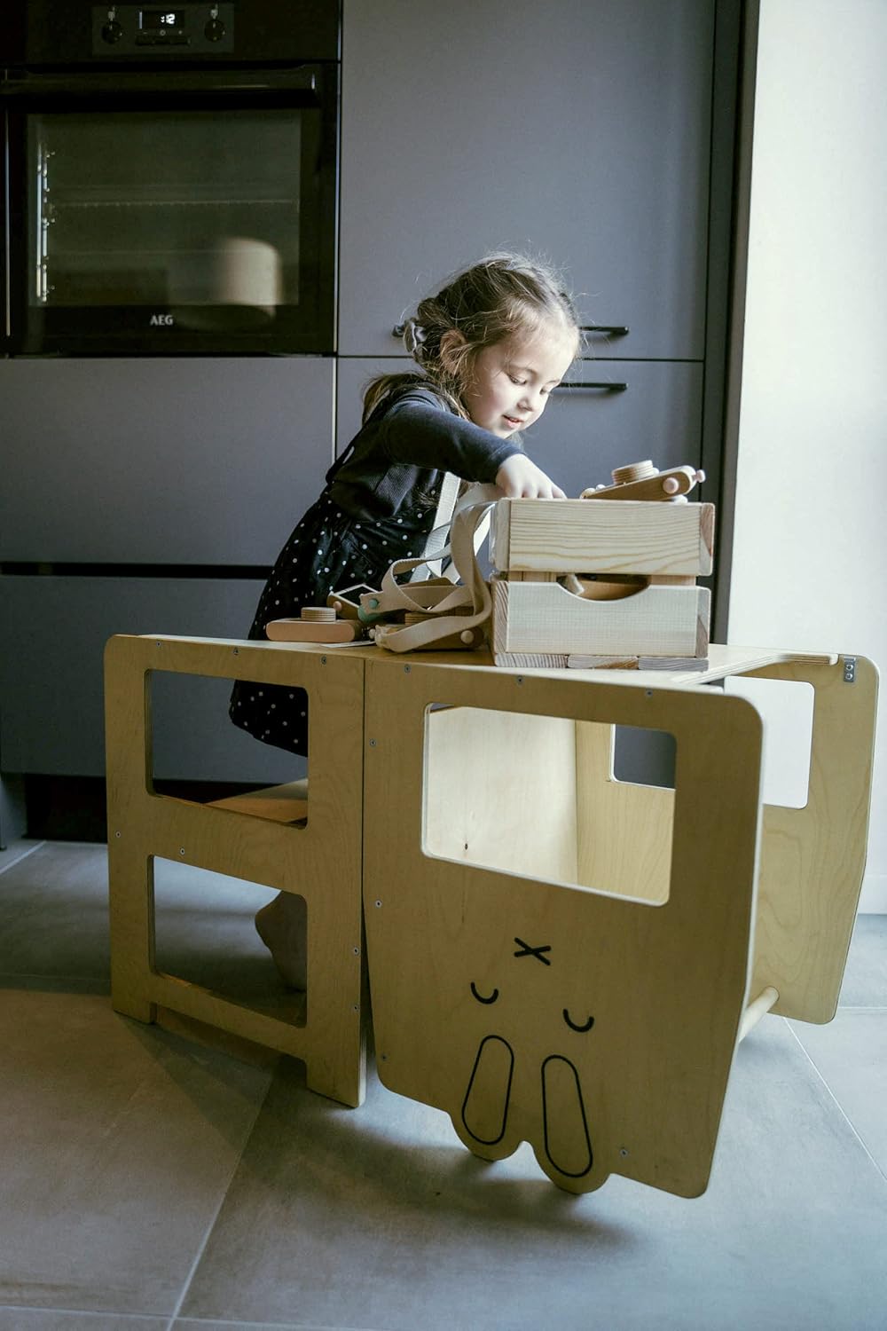 I bambini sono molto curiosi e vogliono scoprire cosa succede sul tavolo della cucina. Con questa torre potranno aiutare mamma e papà a cucinare!