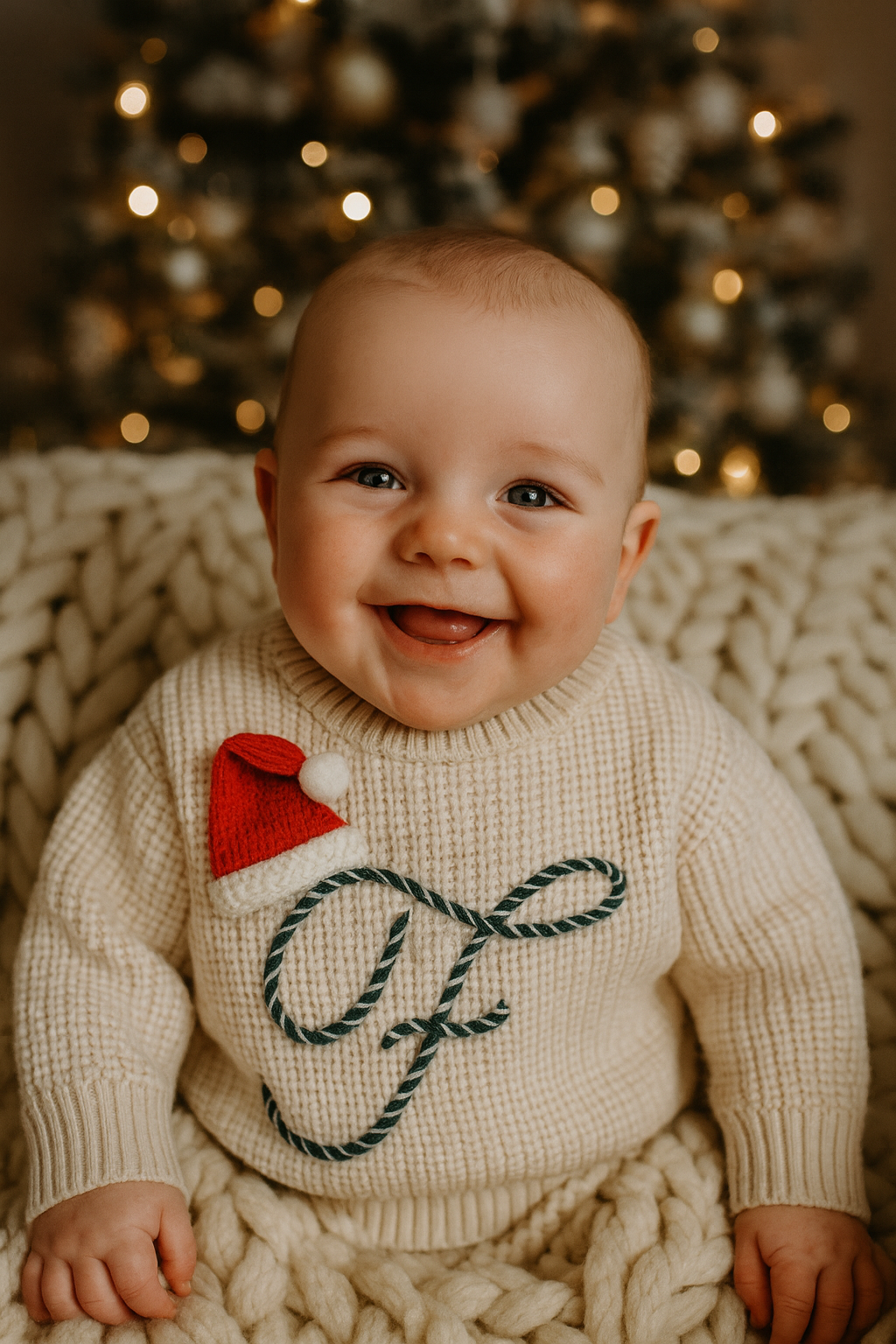 Avvolgi il tuo piccolo in un abbraccio caldo e soffice con il nostro maglioncino personalizzabile, realizzato in morbida maglia a trama fitta.